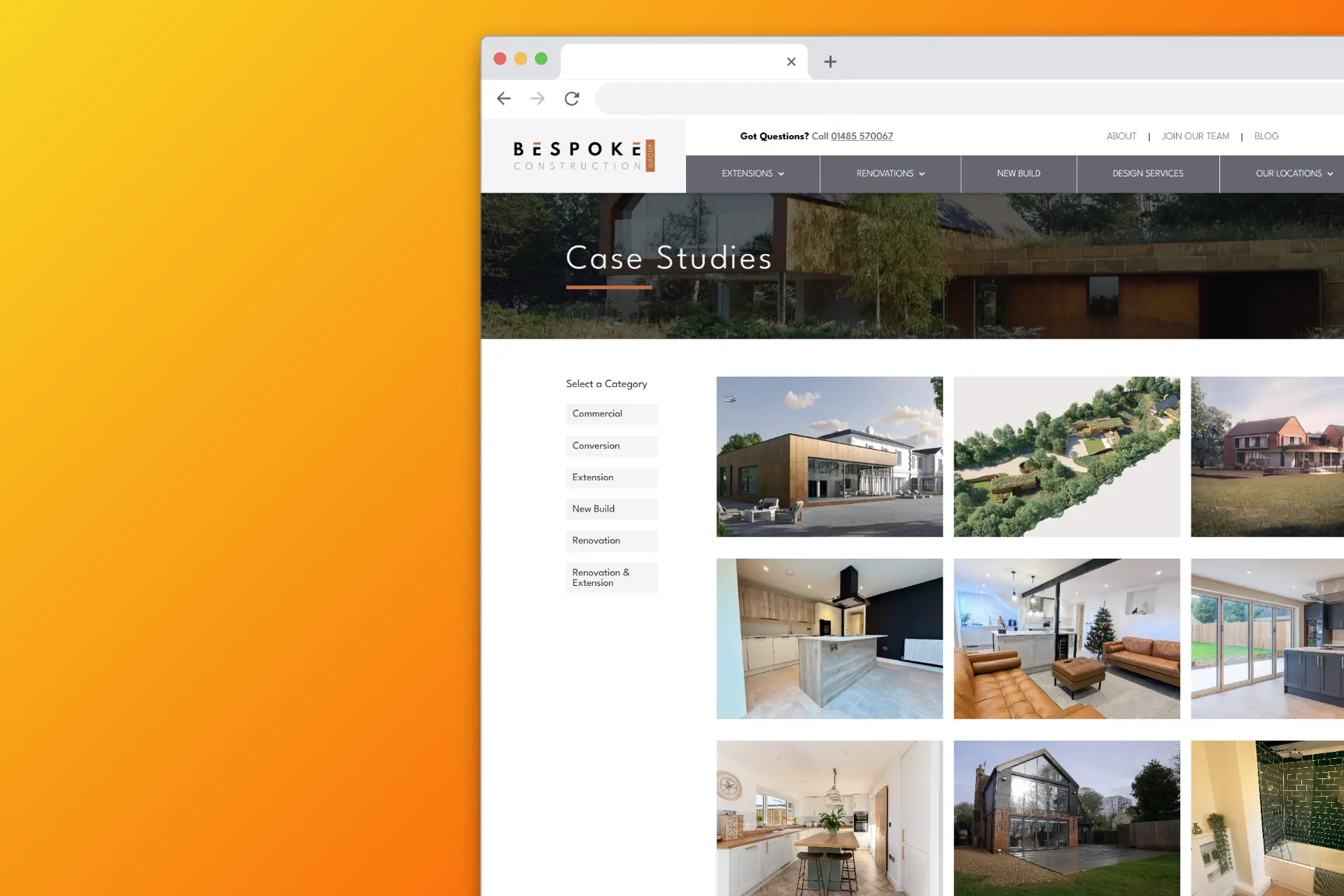 A complete website redesign for Bespoke Construction Group, creating a professional platform to present their construction projects and services.