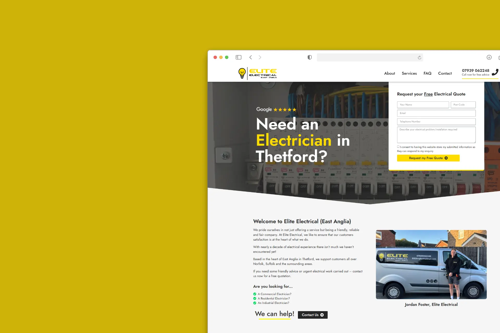 Jordan, the owner, wanted a streamlined single-page website to showcase the range of electrical services offered and to provide a convenient way for potential customers to request quotes directly through the website.