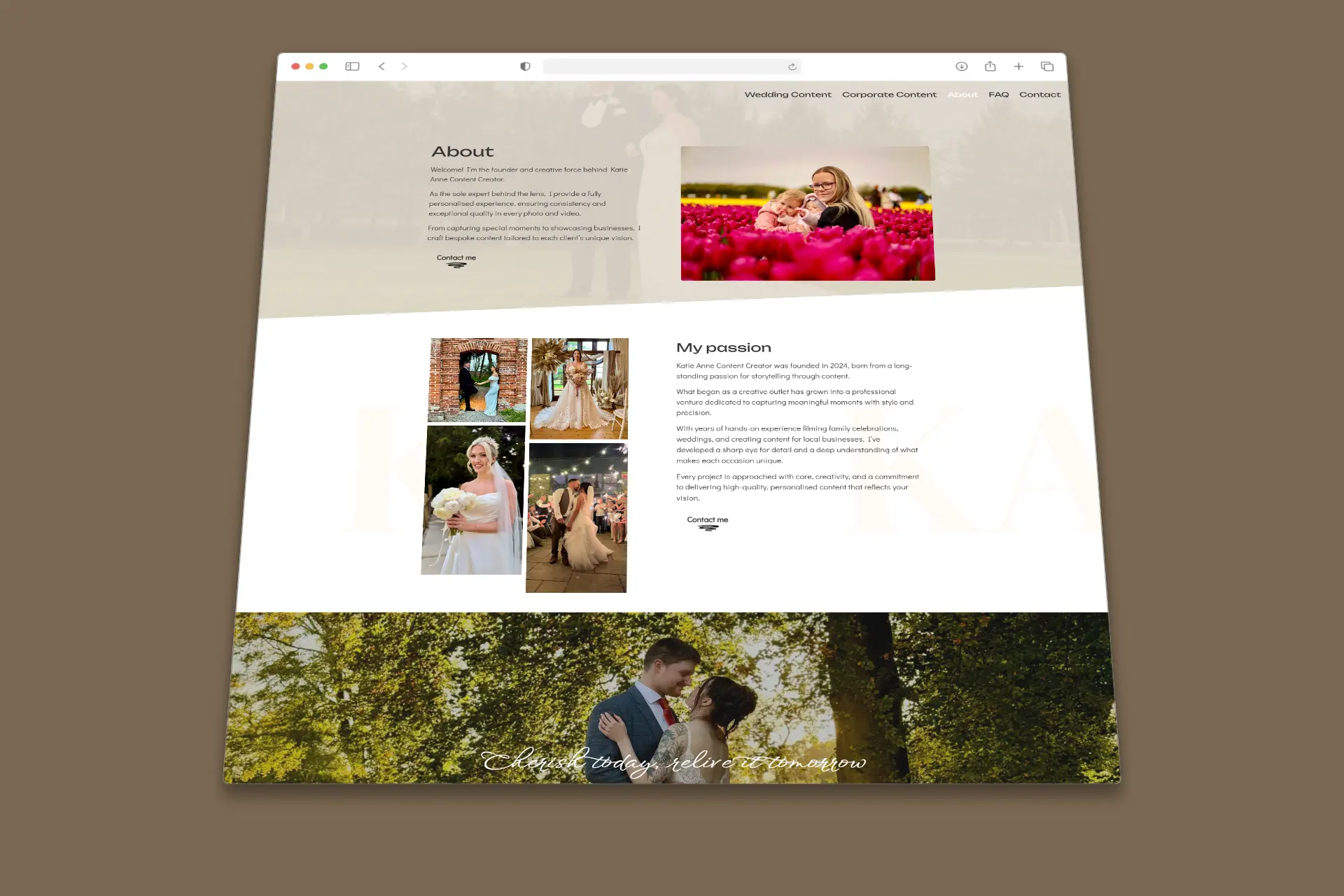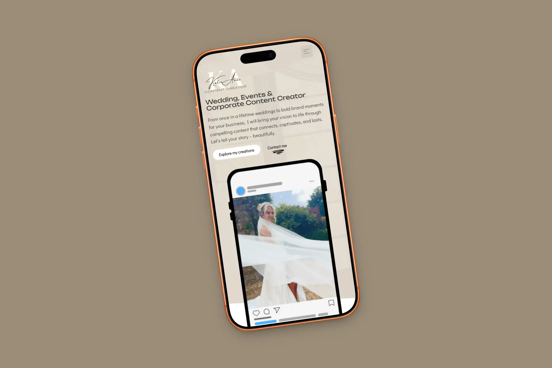 This website I built is for a content creator called Katie who specialises in producing reels, videos, and photos for social media, covering weddings, events, and business promotions.