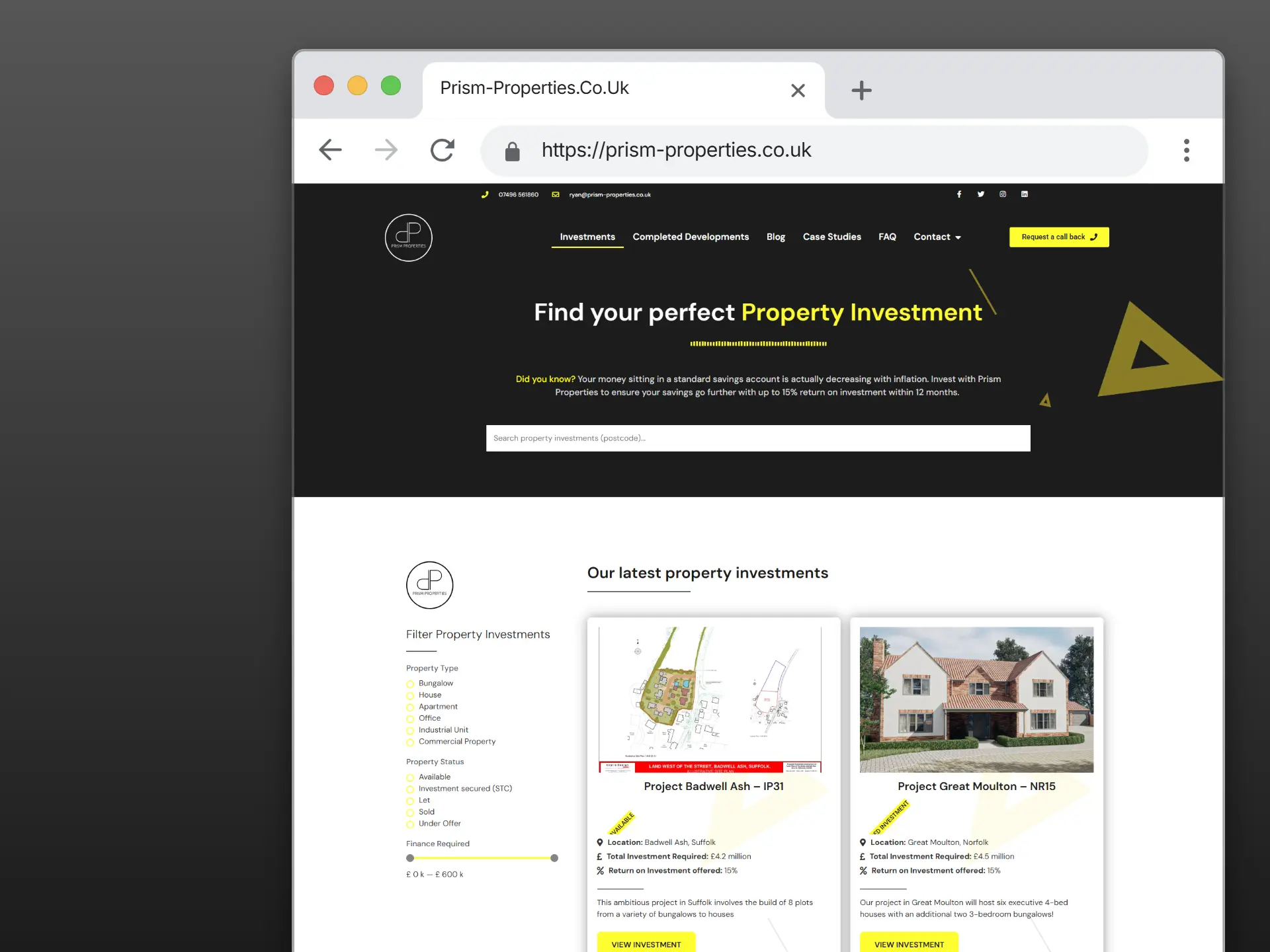 I worked with Prism Properties to deliver a complete digital setup focused on attracting prospective investors. This included building a brand new website designed to present opportunities clearly and professionally, ongoing website maintenance to keep everything running smoothly, and social media marketing to help increase visibility and engagement. The combined approach provides a strong online presence that supports both lead generation and long-term growth.